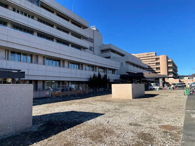 仮設棟の解体工事は、12月上旬に土間、基礎コンクリートの斫り作業、仮設棟跡地への砕石敷が完了し、12月13日をもって完了しました。 騒音や工事車両の出入りにより、患者さんや近隣住民の方へご迷惑をおかけしました。ご協力ありがとうございました。 年明けより旧東西棟内に残置している医療機器や什器備品の廃棄作業を行っていく予定です。