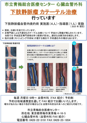 当医療センターは東京都の急性大動脈スーパーネットワークに加盟し、緊急大動脈支援病院として急性大動脈解離、大動脈瘤破裂などの急性大動脈症の治療に24時間体制で対応しています。 → 急性大動脈スーパーネットワーク