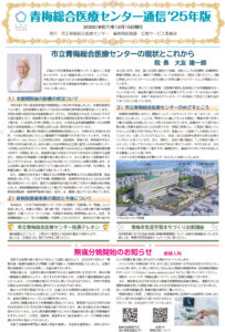 青梅総合医療センター通信’25年版 当院で行っている治療方法などを皆様に分かりやすくお伝えするため、総合病院インフォメーションを発行しております。 (上の画像をクリック) 青梅総合医療センター通信’25年版(PDF3426KB) 主な内容 市立青梅総合医療センターの現状とこれから 無痛分娩開始のお知らせ 「その人らしさ」を支えるケア=当院での緩和ケアへの取組み= 外来のかかり方 かかりつけ医を持ちましょう 「気になったら病院にいこう」最優秀賞 受賞 戻る